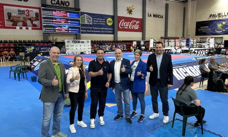 Es la primera vez que “La Nucía, Ciudad del Deporte” acoge el nacional de Kick Boxing. Este Campeonato de España está organizado por la Federación Española de Kick Boxing y Muay Thai (FEKM) con la colaboración Generalitat Valenciana, Diputación de Alicante, Comité Olímpico Español (COE), Consejo Superior de Deportes (CSD) y Ayuntamiento de La Nucía. Esta mañana han visitado los rings y tatamis de competición Jesús Eguía, presidente de FEKM, Ana Isabel Sordo, vicpta. FEKM, Eduardo Martín, pte. Fed. Valenciana Kick Boxing, Eva Naranjo, pta. Club Muay Thai La Nucía, Bernabé Cano, alcalde de La Nucía y Sergio Villalba, concejal de Deportes.