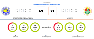 Y entonces llegó la jugada decisiva. A falta de 4 segundos, sí, tan solo 4 segundos, Adesavi, encontró el camino al aro con una penetración que acabó en canasta más falta. El tiro libre se falló, pero la defensa posterior fue impecable ante unos locales que tenían su ocasión. Font de la Figuera no logró anotar en ese último intento y el marcador se cerró con una victoria mínima pero valiosísima para los de San Vicente del Raspeig.