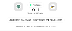Cuando el marcador no refleja lo que pasa en el campo. El equipo femenino del Universitat d’Alacant-San Vicente se enfrentó este fin de semana a dos rivales de entidad: el Club de Campo Villa de Madrid, líder del grupo, y el RC Jolaseta. Dos partidos, dos derrotas por la mínima (0-1), pero también dos actuaciones que confirman que el equipo está creciendo.