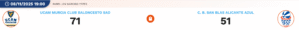 - Resultado final: UCAM Murcia 71 – San Blas Alicante Azul 51