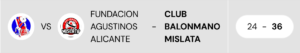 Resultado: Fundación Agustinos Alicante 24 – Club Balonmano Mislata 36