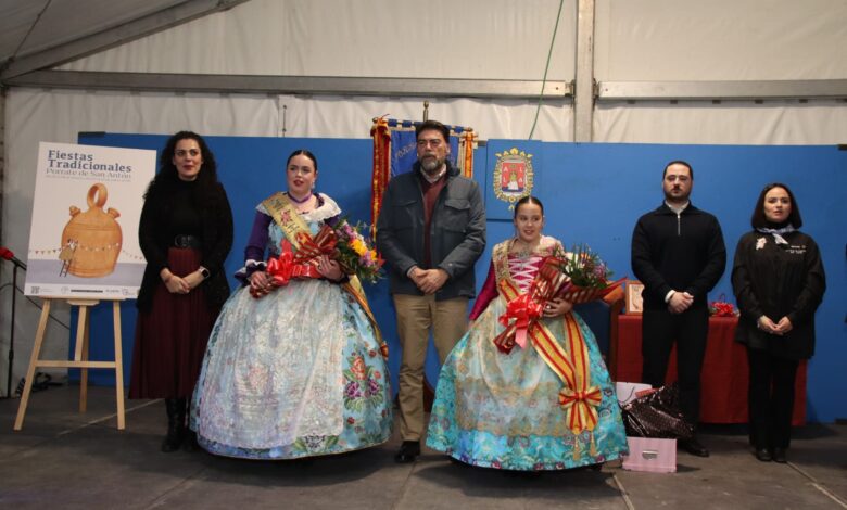 La concejala de Fiestas animó a las Damas de San Antón, Miriam Rodríguez Cremades y Anahís Ibarra Lloria, a disfrutar plenamente de los actos organizados por la Comisión de Fiestas, presidida por Rocío Beltri. Como novedad, ambas lucen en sus bandas el escudo de la Federación de Fiestas Tradicionales, un símbolo que se incorpora por primera vez a esta representación.