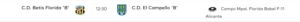 El C.D. Betis Florida «B» recibirá al C.D. El Campello, penúltimo en la tabla, en un duelo clave para seguir escalando posiciones.