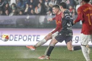 arranque, el encuentro estuvo lejos de ser vistoso. El césped pesado y resbaladizo dificultó la circulacióndel balón y favoreció un juego espeso, con muchas disputas y pocas secuencias largas. La primera aproximación con peligro fue para el conjunto local, en una acción en la que Mollejo probó suerte dentro del área y obligó a Dimitrievski a intervenir con seguridad para evitar el primer tanto.
