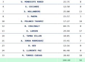 Mike Torres (18), Jordá (7), Mwema (3), Kevin Larsen (17), Tamba (6) –quinteto–; Deng Geu (0), Polanco (18), Hollanders (13), Mendicote (8), Ceccardi (0), Coulibaly (0), Llorente (0).