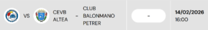 • Club Balonmano Petrer: visitará a CEVB Altea el 14/02/2026 a las 16:00.