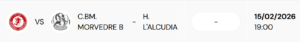 • C.BM. Morvedre B: recibirá a H. L’Alcudia el 15/02/2026 a las 19:00.