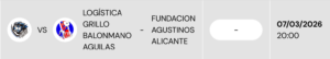 Logística Grillo BM Águilas (20+15): Deividas Kilpys y Pablo Luque (porteros), Francisco José González (1), José Pérez (7), Juan Francisco Del Peral (1), Ginés López (1), José Manuel Rodríguez (2), Anderson Caycedo (4), José Padilla (12), Sergio Robles (1), José Luis Rodríguez (4), Daril González (2), Ismael Sous.