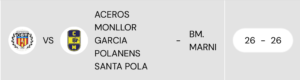 Resultado: Aceros Monllor García Polanens Santa Pola 26 – BM Marni 26.