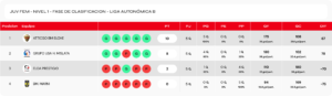 Competición: JUV FEM NIVEL 1 – Fase de Clasificación Liga Autonómica B