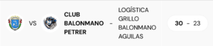 Resultado final: Club Balonmano Petrer 30 – 23 Logística Grillo Balonmano Águilas