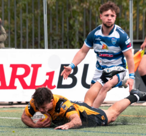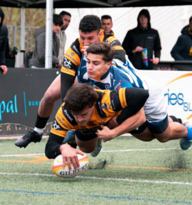 El equipo vilero logró reaccionar puntualmente con acciones de orgullo, encontrando el ensayo de Pedro Martínez tras una fase insistente cerca de la línea, y más tarde otra marca que volvió a reducir momentáneamente la diferencia. Sin embargo, cada intento de acercamiento fue respondido de inmediato por Burgos, que no permitió que el encuentro entrara en un escenario de incertidumbre. Antes del descanso, los locales ya habían dejado el partido muy encarrilado, castigando cada error visitante y explotando los espacios con rapidez.